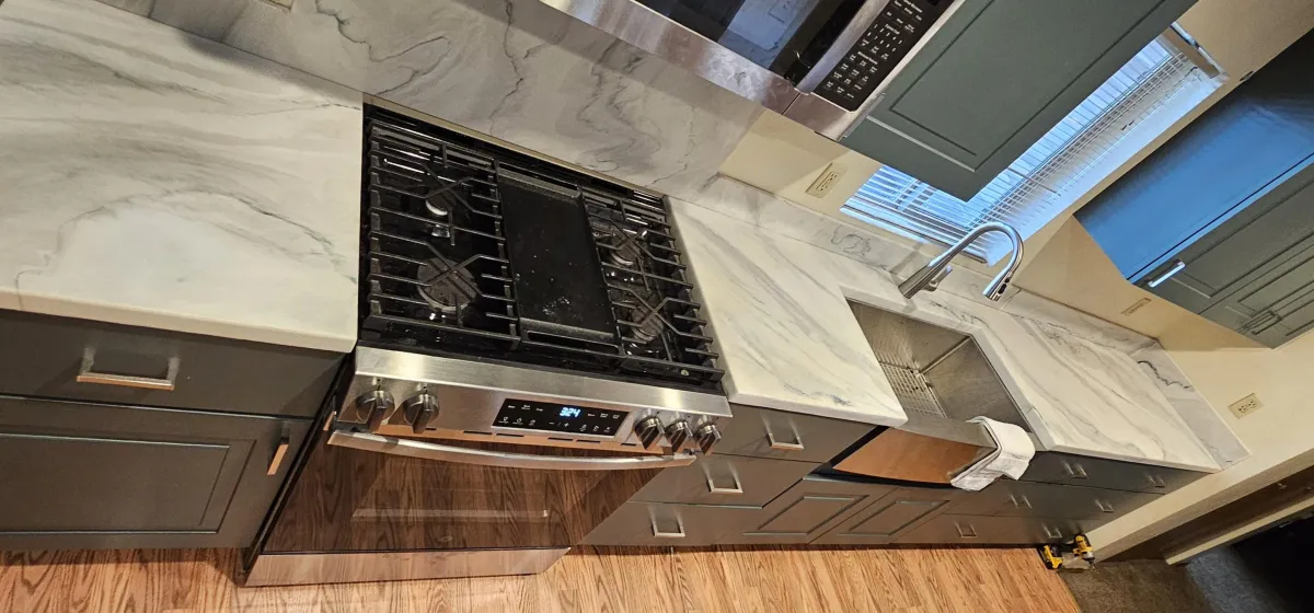 Our epoxy countertops are crafted using high-quality materials that mimic the look of natural stone, providing a seamless finish that is both beautiful and functional. With an extensive selection of colors and patterns, we can customize your countertops to match your personal style and enhance your home’s interior.